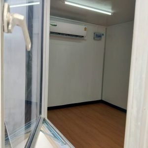 - ประตูแผ่นเหล็ก เคลือบด้วยสังกะสีป้องกันสนิมและสีโพลีเอสเตอร์ป้องกันความชื่นทั้งสองด้าน กรอบและวงกบประตูเป็นอลูมิเนียมขึ้นรูป ขนาด กว้าง 900 มม. สูง 2,000 มม. พร้อมกุญแจลูกบิดและยางกันชนประตู จำนวน 1 ชุด